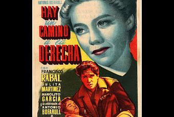 Hay un camino a la derecha es una de esas películas del cine español que desconciertan por el drama social que reflejan, el de una España mísera en la que los pobres solo pueden aspirar a sobrevivir, no a prosperar. La película adopta desde el principio un acertado tono neorrealista en el que las imágenes de las calles del Raval, del puerto de Barcelona y de las chabolas de Somorrostro son casi tan importantes como las acciones de los personajes. Aquí se cuenta una historia tremendamente trágica, que comienza con el protagonista despidiéndose de su duro empleo de marino y volviendo a casa con su mujer y su hijo en una Barcelona tremendamente sórdida. A partir de aquí, Miguel debe resolver sus problemas económicos y de dignidad, por lo que entrará en una espiral que le llevará al crimen (algo que recuerda bastante al argumento de Surcos). Aunque la película quiere lanzar ciertos mensajes morales en forma de diálogos muy artificiales entre la pareja protagonista, lo cierto es que la conclusión que saca el espectador es bastante desoladora, puesto que la historia refleja una ciudad siniestra y sin oportunidades para los más desafortunados, un reflejo realista de la España de la época, que todavía era época de hambre y privaciones para gran parte de la población. Además de como una historia muy bien rodada y creíble (a pesar de los añadidos edulcorantes), Hay un camino a la derecha puede contemplarse como un estupendo documento histórico.P: 7