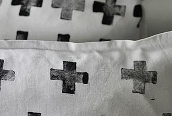 Se trata de plasmar las famosas cruces en una funda de cojín básica, podéis probar a hacerlo en una colcha o una funda de almohada. Para ponerlo en práctica solo tenéis que seguir el paso a paso según las fotografías pero veréis que es un juego de niños.