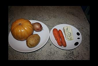 La receta es bastante fácil de hacer, aunque requiere su tiempo. Primero le quitamos la piel a la calabaza y las semillas, pelamos la patata y la lavamos junto con las zanahorias. En una olla ponemos un poco de aceite y freímos la cebolla que previamente habremos cortado finamente. Cuando la cebolla ya haya cogido un poco de color, ponemos la patata, las zanahorias y la calabaza. Añadimos agua hasta cubrir todos los ingredientes y le echamos el caldo de verduras. Lo dejamos hasta que comience a hervir y añadimos sal y pimienta al gusto.