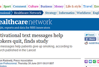 Un titular claro y concreto en un periódico influyente: "Motivational text messages help smokers quit, finds study". Poca duda nos puede quedar leyendo algo tan tajante. La noticia aparece en The Guardian y cita un reciente artículo publicado en The Lancet bajo el título "Smoking cessation support delivered via mobile phone text messaging (txt2stop): a single-blind, randomised trial". Claro, que si The Lancet lo dice, podemos lanzarnos directamente a publicarlo sin miedo.