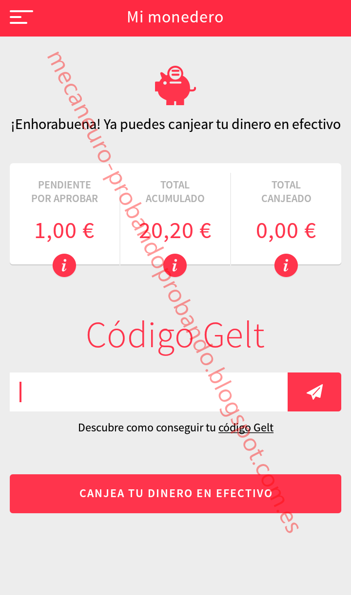 Justo ayer pedí el pago. Se supone que en unos días me tiene que llegar un sms y un correo con un código, este código me permitirá sacar los 20€ ganados en Gelt a través de un cajero. Os iré informando.Es la primera vez que voy a cobrar de GELT, pero se que pagan porque yo misma acompañé a una amiga a cobrar sus 20€ acumulados en esta app.Si quieres saber de que va GELT, pincha en este enlace. Si quieres registrarte en GELT, pincha en este enlace.Y empieza a ganar dinero con tus compras como yo!!¡¡FELICES GANACIAS!!