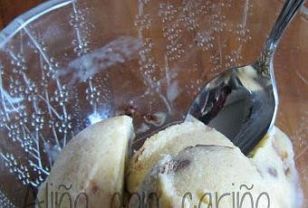 Volcamos la mezcla anterior en un cazo y ponemos de nuevo al fuego, sin parar de remover, hasta que espese. Retiramos y lo volcamos en un recipiente apto para congelar. Esperamos a que entibie y lo metemos en la nevera durante media hora aproximadamente.A partir de aquí, podemos hacer el helado según el método tradicional o con heladera, si la tenemos. Os pongo las dos opciones.