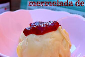 6.- Colocamos la bola de helado donde vayamos a servir y cubrimos con mermelada de tomate...