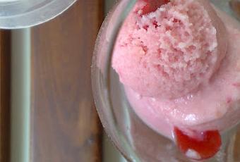 un helado de cerezas diferente.....porque es de cerezas confitadas y perfumado con maraschino