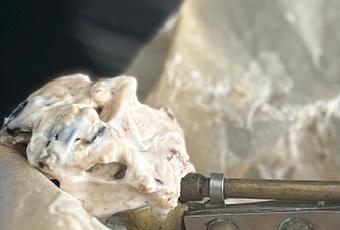 Forra un molde con papel vegetal. Vierte el helado y reserva en el congelador entre 4 ó 5 horas.