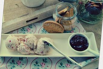 Pensaba que hacer helado sin tener heladera iba a ser lo peor del mundo, pero no!!! No es peor que hacer hojaldre casero jejeje :-P es broma, es muy sencillo, es sólo que hay que estar pendiente de nuestro helado cuando esté en el congelador para que no se nos hagan cristales de hielo en la mezcla y nos salga cremosito!!Yo he usado mermelada de fresa y frambuesas enteras, pero lo podéis hacer de lo que queráis, de caramelo, de arándanos, de manzana, de chocolate,......las combinaciones de este helado de cheesecake son infinitas jejeje