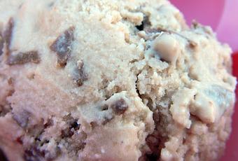 Pasa a la heladera, no llegará a coger la consistencia cremosa, pero le habremos dado el suficiente frío para conseguir que no cristalice, Le añadimos pepitas de chocolate y removemos.
