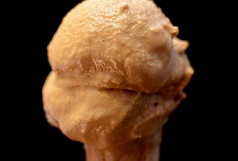 Monta el helado en una máquina heladora durante unos 30 minutos, vierte en un recipiente que puedas meter en el congelador durante unas 4 horas para que el helado tome cuerpo.