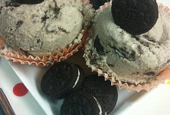 Cuando se vaya a servir se templa un poco para hacer bien las bolas y se decora con una galleta mini-Oreo.