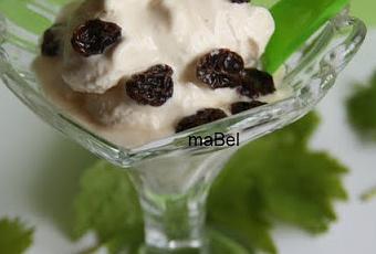 Como topping, usé pasas de uva. Las hidraté en agua hirviendo unos 5 minutos, luego, cuando vi que estaban tiernas, les saqué el agua, y le puse ron, y ahí las dejé hasta el momento de servir el helado