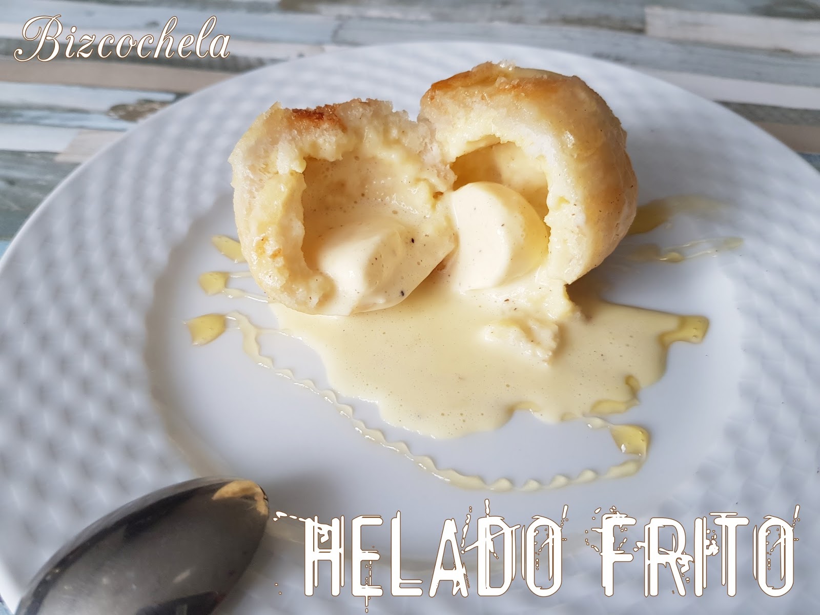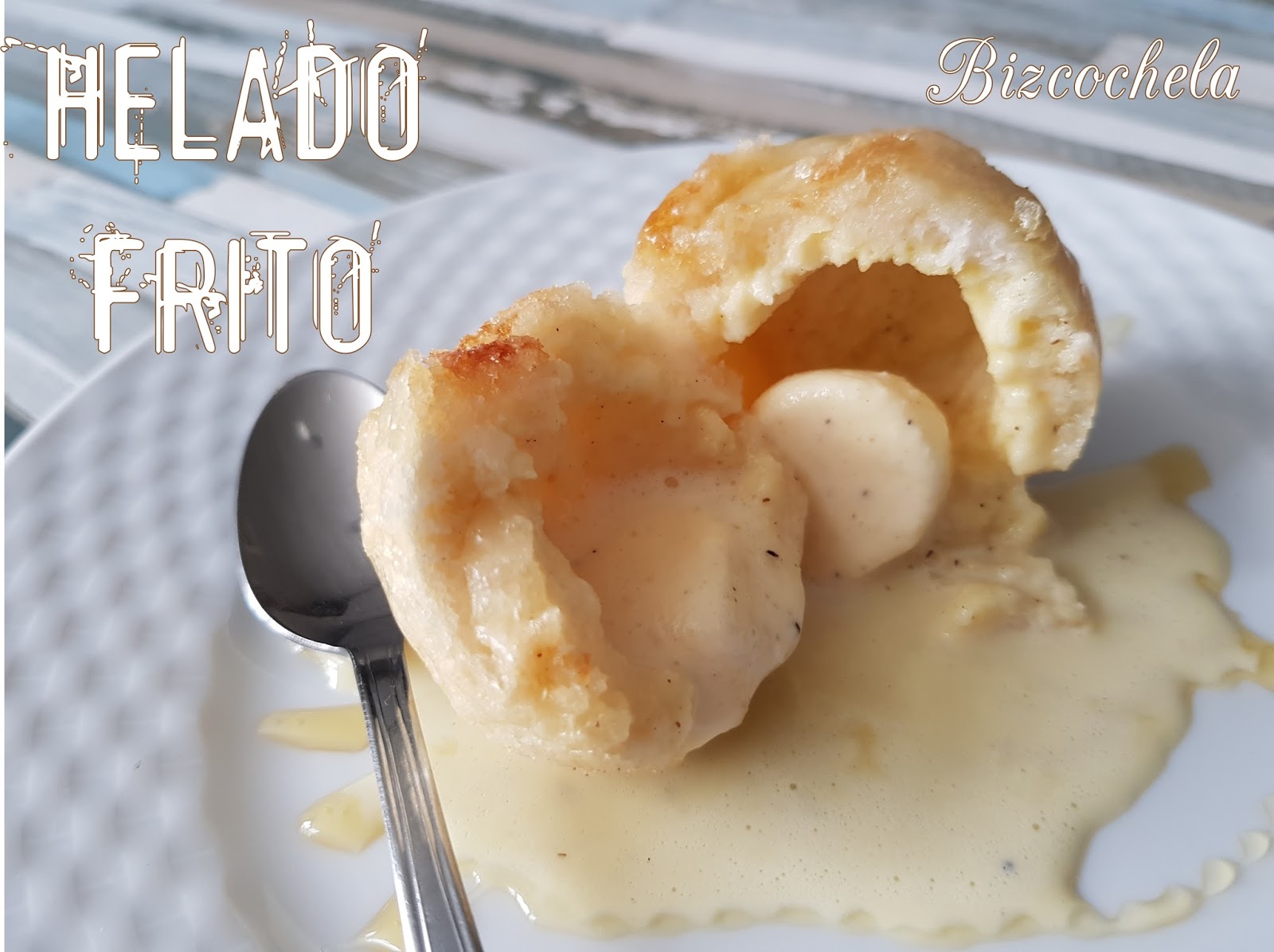 8. - Freímos hasta que esté dorado el pan, el aceite debe estar muy caliente para que se fría rápidamente y el centro siga congelado.