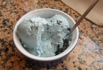 En un principio iba a dejar el helado rosa, pero luego dado que en mi casa gusta mas el color azul , lo teñi con un poco de colorante alimentario que tengo por casa.