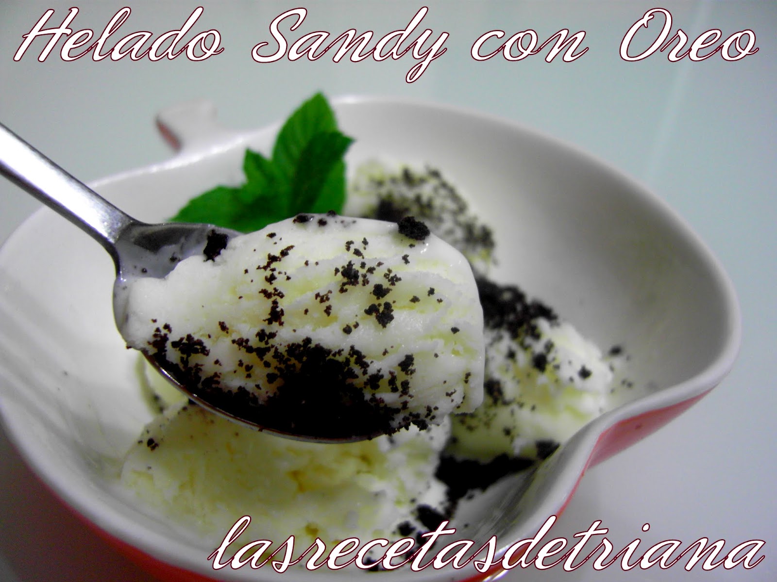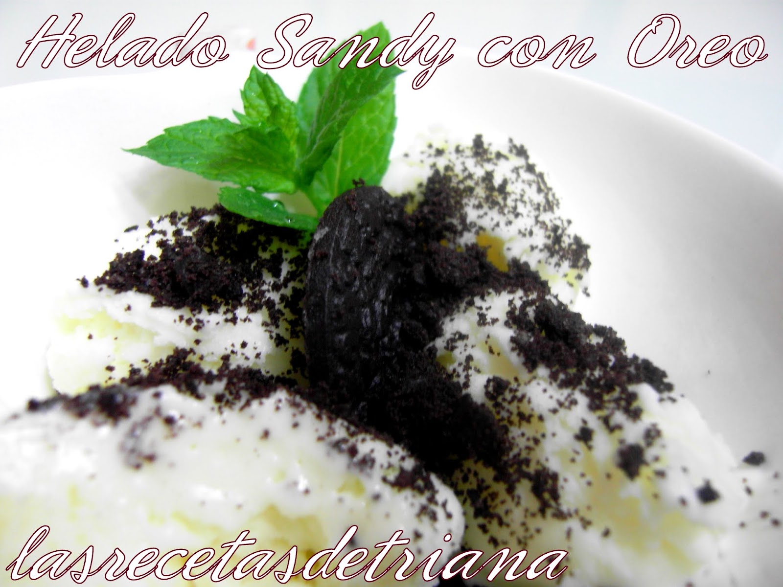 Traemos uno de los pocos helados que hemos preparado con la heladera que nos compramos al principio de verano, la verdad es que le dimos muy poca utilidad debido a lo incomoda que es para preparar estas elaboraciones, es mi opinión, necesitamos preparar la base, dejar coger temperatura y macerar en el frigorífico, esto dependiendo de cual sea, tener el cubo base de la heladera en el congelador veinticuatro horas y luego cuarenta minutos de funcionamiento del cacharro, no os paséis que se quema, que se estropea, y en la mayoría de los casos, salvo helados ricos en grasas como pueden ser natas, mantequillas o aceites, queda un helado liquido a punto de cuajar...es para degustar en el instante, en el ins-tant-te!!! Repito, es mi opinión, es la conclusión de lo que nos ocurrió durante todo este verano, menos mal que la inversión es mucho menor que si nos compramos alguna tarrina o cualquier bol de helado en cualquier Hiper o Super... habrá que barajar la posibilidad de comprar una con compresor incorporado, una heladera de las de verdad como hizo hace un tiempo Jose Manuel de "Asopaipas"...no una amasadora de plástico que enfría por contacto con sus paredes heladas...algunos que me estén leyendo estarán deseando de tenerme enfrente para darme para el pelo, jajajajaja....!!! De todas formas seguiremos con la heladera algún tiempo mas, aunque la utilicemos poco debido a la escasez de tiempo que tenemos, el resultado de algunos helados es muy satisfactorio como el que preparamos de Albahaca y aceite de oliva...o sin ir mas lejos, este de Sandy con Oreo, ingredientes y preparación extraídos de "Bocados dulces y salados"...con algún retoque, creo que un acierto, un gran acierto...os recomiendo que hagáis este...genial!!!
