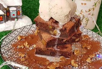 - Como opción, servimos el helado con unos brownies veganos y un chorro de Baileys por encima.