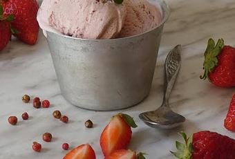 Hay quien le encanta las fresas y es vegano. Con este helado se podrá relamer ya que ese toque de pimienta rosa le da su chispa.