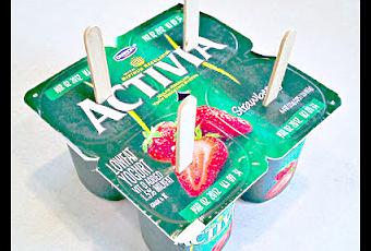 yogures que tengas en la nevera y colócales unos palitos que hayas guardado de otra vez (si no tienes puedes usar tenedores o cucharas de café). Al congelador un par de horitas y listo. Más fácil imposible.