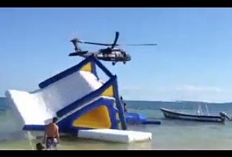 MÉXICO.- Un helicóptero de la Policía mexicana que volaba a baja altura en una playa de Cancún provocó que un tobogán hinchable volcara con una niña en su interior. En su movimiento, la atracción provocó heridas a otras personas que estaban en el lugar.