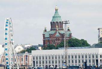 Es una maravilla esa fachada imponente de color blanco, ornamentada con verdes cúpulas y estrellas doradas, típica estampa de marchamo ortodoxo. Tus piernas querrán quedarse atrás cuando enfilen la descomunal escalinata que lleva al templo, pero bien vale la pena el ejercicio. La plaza, obra del propio Engel, es un concilio de gaviotas al más puro estilo Plaza de San Marcos de Venecia. Cuando entras a la iglesia, después de traspasar los formidables pilares verticales (columnas), reparas en la simpleza casi baldía de la catedral que se construyera como tributo a Nicolás II. Y ya que estamos religiosos, otra iglesia: la de Uspensky o Uspenifo, que significa "dormición" (1868). Esta es realmente hermosa, toda roja en ladrillo, engalanada con doce cúpulas y capirotes verdes. Dedicada a la advocación de la dormición de la Virgen María, es una mole enorme perfectamente visible cuando llegas en barco. Esta iglesia ortodoxa es la más grande de Europa Occidental y la construyó Aleksei Gornostajev.