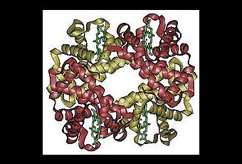 Molecula de Hemoglobina, cuando se une a la glucosa, forma la hemoglobina glucosilada o hemoglobina A1c