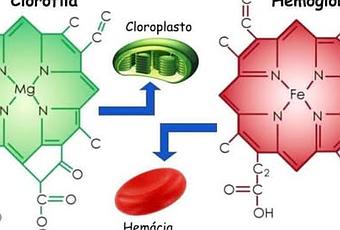 La hemoglobina y la clorofila son moléculas clave en animales y plantas, respectivamente, con estructuras sorprendentemente similares. Ambas contienen un anillo de porfirina, una estructura química cíclica con un ion metálico en el centro. La hemoglobina, presente en glóbulos rojos, tiene un ion de hierro (Fe²⁺), crucial para transportar oxígeno y dióxido de carbono. Por su parte, la clorofila, esencial en la fotosíntesis, contiene un ion de magnesio (Mg²⁺) que captura energía solar. Estas diferencias metálicas determinan sus funciones: la hemoglobina permite la respiración celular y la clorofila, la producción de energía. La similitud estructural y sus roles opuestos ejemplifican la diversidad funcional en la química de los seres vivos. Hemoglobina y clorofila son pilares esenciales para la vida en la Tierra, conectando respiración y fotosíntesis.
