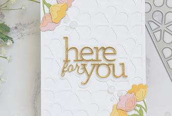Como podéis ver he usado solo troqueles para hacer esta tarjeta (otra vez ;)). He hecho el fondo con el troquel "Fab Floral Plate", las flores con el troquel "Blossom Vine" y el sentimieno con el troquel "Here for you" de Simon Says Stamp.
