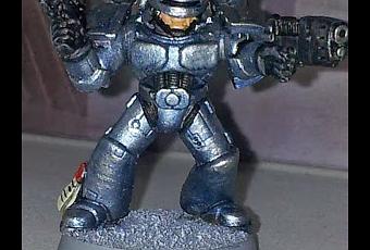 Desde el estado de Indiana,EEUU,llega esta conversión tan simpática para los marines espaciales.Jeremy Weaver vio hace unos meses que los Manos de Hierro habían tenido un gran auge con el tema de la Herejía de Horus y el lanzamiento del sub-codex de los Manos de Hierro.Y pensó:"Si los Manos de Hierro son como ciborgs,no se seria bueno que estuvieran dirigidos por el mejor?"Y así sale esta transformación,bastante simple,pero muy efectiva de Robocop(El Agente Murphy) en un marine espacial.Un poco de masilla,y limar algunas partes y con piezas de plástico se ha podido montar esta miniatura,solo que ahora a dejado los "arbitres" de Detroit y se ha pasado a los Astartes de la X Legión.