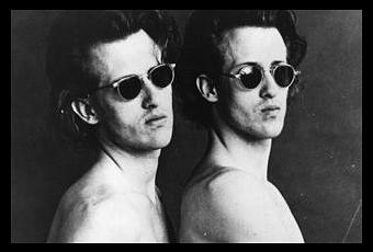 Mi descubrimiento de esta pareja de gemelos idénticos -reconozco- ha sido bastante tardía, y todavía estoy embaucado en este deleite que recomiendo ingerir poco a poco. Afortunadamente, las tubipáginas (esta, esta o esta otra) están repletas de sus trabajos, e IMDB contiene una escrupulosa lista de su producción que me ahorra reproducirla.El objetivo de esta entrada era otro. Su anecdótica aparición en el primer largometraje de Peter Greenaway (a quien también dedicamos una entrada hace un tiempo), en el que encarnaban a una pareja de gemelos idénticos aquejados de VUE (Violent Unknown Event). No examinaremos aquí la película de Greenaway, suerte de documental enciclopédico ficticio y futurista, pero sí resaltaremos el encuentro que tuvieron a principios de los 80 con el realizador galés quien se inspiró en ellos para la conformación de la pareja protagonista de la película A Zed & Two Noughts (ZOO, 1985).