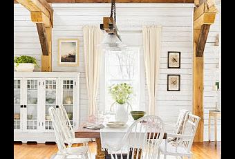 Todo el conjunto esta construido en madera rustica, con estructura en color natural y muros en blanco.