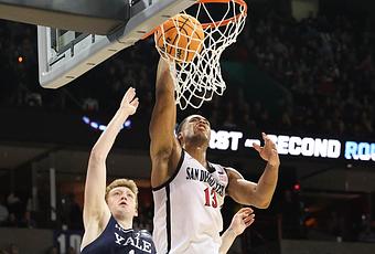 85-57 Destrucción 13yYale, el primer cabeza de serie, el domingo por la noche en Spokane Veterans Memorial Arena fue solo el último ejemplo, enviando a los Aztecas, quintos cabezas de serie, al Sweet 16 en el Torneo de la NCAA por cuarta vez en la historia de la escuela y el segundo año consecutivo para enfrentar el No. 1 cabeza de serie: jueves en Boston vs. Connecticut a las 4:39 pm PDT por TBS.