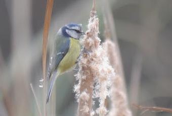 El grupo de herrerillos de Xagó vagaba esta tarde entre los carrizos de la zona de las charcas, aprovechando que están en plena fructificación. Comían con fruición sus semillas; hecho que además le viene muy bien al carrizo dado que los pájaros esparcen sus semillas al aire asegurando su dispersión y la colonización de nuevas zonas húmedas. Esto puede verse en este breve vídeo.