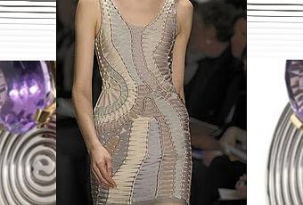 Las nuevas propuestas de la marca Hervé Léger lo rescatan y lo renuevan mezclando los colores de temporada con transparencias y con unas aplicaciones de bandas elásticas que zigzaguean y dibujan formas geométricas que esculpen el cuerpo a cada trazo.
