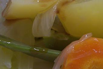 troceamos las verduras, ponemos en una olla, cubrimos con agua y un puñado de sal