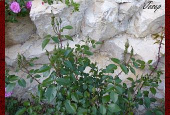 Sigo con la historia de este híbrido obtenido por cruce programado de las dos variedades mencionadas en e título. Como os dije, injerté sobre la canina del terreno, a escudete, hace algunos veranos, yemas de este rosas. No soy especialmente partidario de injertar, pero a veces no queda más remedio. En mi caso, porque práticamente no hay suelo donde plantar: la canina silvestre arraiga prácticamente en cualquier sitio y tiene raíces a prueba de rocas y sequía. Además, aporta un vigor que no le va mal a una variedad recién obtenida. Es a partir de estas plantas injertadas que esta temporada he podido obtener los primeros esquejes de esta variedad en sus raíces. Los tallos de la planta madre son del grosor de un hilo, mientras que los de las plantas injertadas son mucho más gruesos.