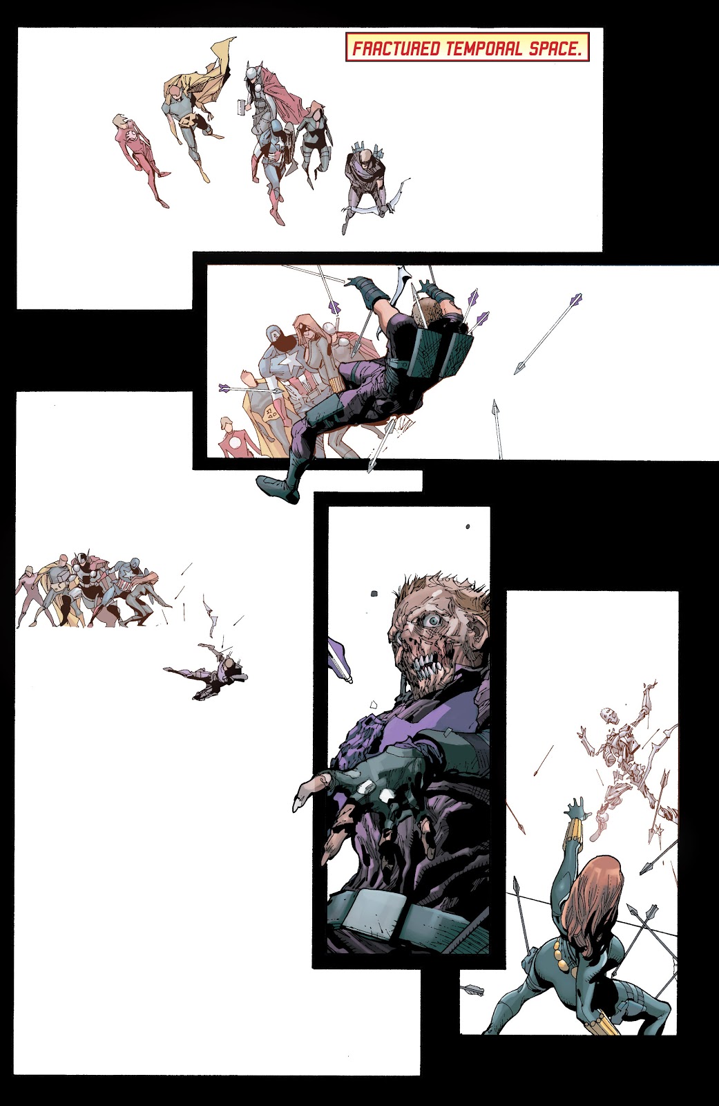Tercer salto hacia delante. Thor y un Hiperión sobrante se caen.