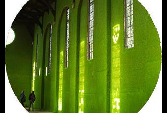 La piel que cubre nuestro organismo nos define como seres humanos, también los edificios tienen piel y según en cada caso y época está ha sido mayoritariamente tierra, piedra, acero, vidrio... Hoy que la fiebre de lo verde en está en auge os traemos estas intervenciones de Cakroyd y Harvey, un equipo de artistas que cubre la arquitectura de un manto verde de césped real imaginando una piel nueva y reptiliana. Utilizan una técnica que combina semillas de un tipo de césped muy fino y una arcilla que proyectan sobre las superficies.