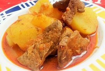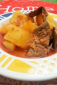 Cuando las patatas estén casi tiernas ( más o menos a los 15 minutos ), pon el hígado troceado para que termine de hacerse. Hay que tener en cuenta que el hígado no debe cocer demasiado pues se endurece.