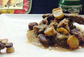 Colocamos los filetes de hígado, removemos la cazuela tipo pil – pil y dejamos unos 5 minutos.