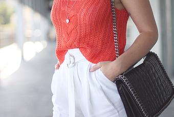 ¡Buenos días! Ya estoy por aquí de nuevo con un nuevo outfit para enseñaros, en este caso, estreno pantalones de las rebajas. Fue amor a primera vista, de hecho lo tenía fichado en color camel, pero en cuanto vi el blanco no pude resistirme, y darle la pincelada final con el top naranja me pareció una forma acertada, ¿que opináis? Muchas gracias por todas vuestras visitas y comentarios, gracias por leer este pequeño blog un día más.Good Morning! Now I'm here again with a new outfit to show you, in this case my new pants from sales. It was love at first sight, in fact I had signed in camel color, but when I saw the white I couldn't resist, andI think give the final touch with the orange top, what do you think? Thank you very much for all your visits and comments, thanks for reading this little blog another day.