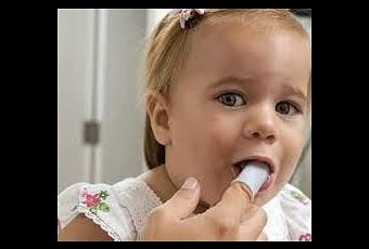 Cuando el bebé no tiene dientes se puede optar también por un cepillo con un cabezal que masajea la encía y alivia durante la dentición. Muchos de ellos tienen un aro protector para que si lo usa el propio niño no se lo introduzca entero en la boca y se ahogue.