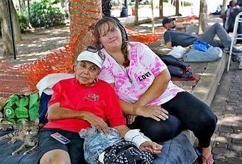 Carmela Batista con su hija Ana Batista viven en el parque Stranahan, frente a la biblioteca pública de Fort Lauderdale.