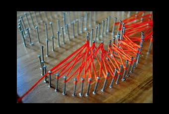9.- En esta forma de trabajar el hilorama se notan los clavos formando el contorno de la figura.