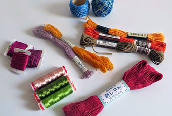 - Hay hilos que están trenzados (el perlé) y otros que tienen una torsión (el mouliné). Cada técnica de bordado exige un tipo de hilo y un manejo del mismo para evitar que el hilo se enrosque o se deshilache.