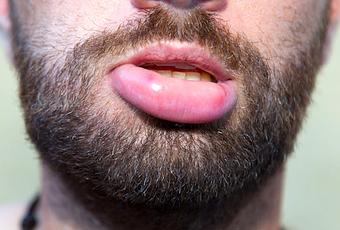 El angioedema es una reacción alérgica que produce hinchazón de la cara, los labios y los ojos.