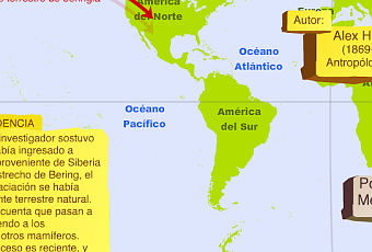 Mapa con las teorías sobre la procedencia de los primeros hombres americanos (40.000 b.p.)