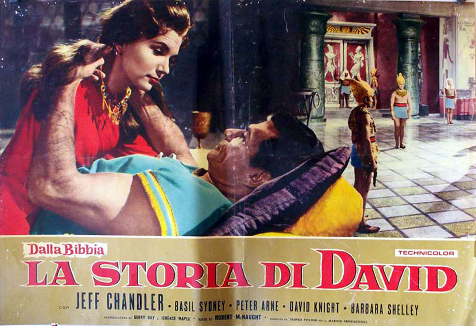 Argumento: David, ya pasados muchos años desde que derrotó al gigante Goliath, es adorado por su pueblo, pero no por el rey Saúl, quien "jamado el coco" por su mayor consejero, un hombre sin escrúpulos, atenta contra el héroe y le hace huir por el desierto.