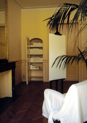 Merz: Eligió la casa de un un profesor universitario coleccionista de arte, donde instaló una mesa de granito.Giulio Paolini: Sillón con funda y delante un caballete con un lienzo en blanco. Al fondo biblioteca con libros cubiertos de lienzo blanco, proyección de los lienzos en la biblioteca, límite difuso del lienzo.