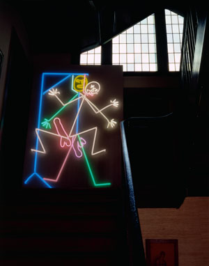 Bruce Nauman: 'Chico malo, chica mala'. Los niños de la casa fueron enviados de vacaciones fuera de casa mientras los neones de Nauman estuvieron en su domicilio.