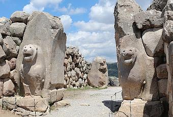 Ruinas de la Puerta del León en Hattusa, la capital hitita en el actual Boğazköy, Turquía