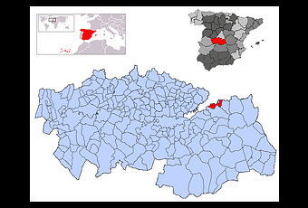El municipio se encuentra situado «en el declive de una colina al SO.»3 Pertenece a la comarca de la Mesa de Ocaña y linda con los términos municipales de Aranjuez al norte y oeste en la provincia de Madrid, Noblejas al este, y Ocaña al sur, en la de Toledo.