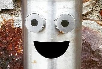 La vida es actitud. Cuando eres feliz y sonríes, encuentras felicidad y sonrisa en todos los lugares aunque sea en un contenedor para reciclar pilas.